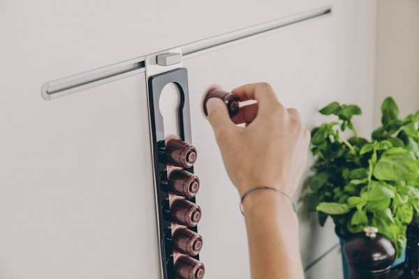 Notre distributeur de capsules peut être fixé de manière modulable sur le rail et peut contenir jusqu'à 6 capsules de café. Il est fabriqué en aluminium et en plexiglas noir de haute qualité. Les amateurs de café peuvent bien entendu fixer plusieurs supports les uns à côté des autres - il y a suffisamment de place.